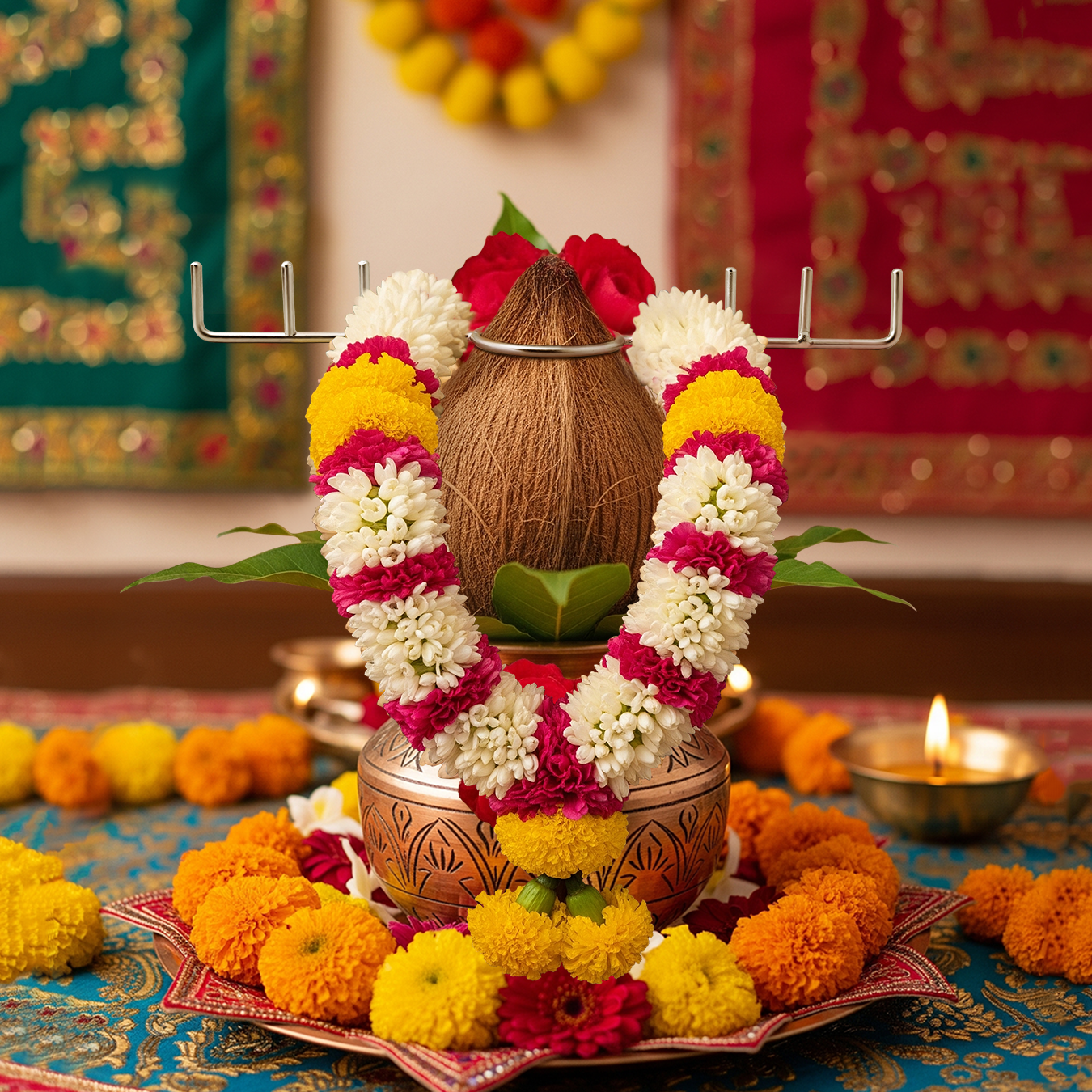 Functionality: Provides secure support for kalash during pooja and ceremonies.