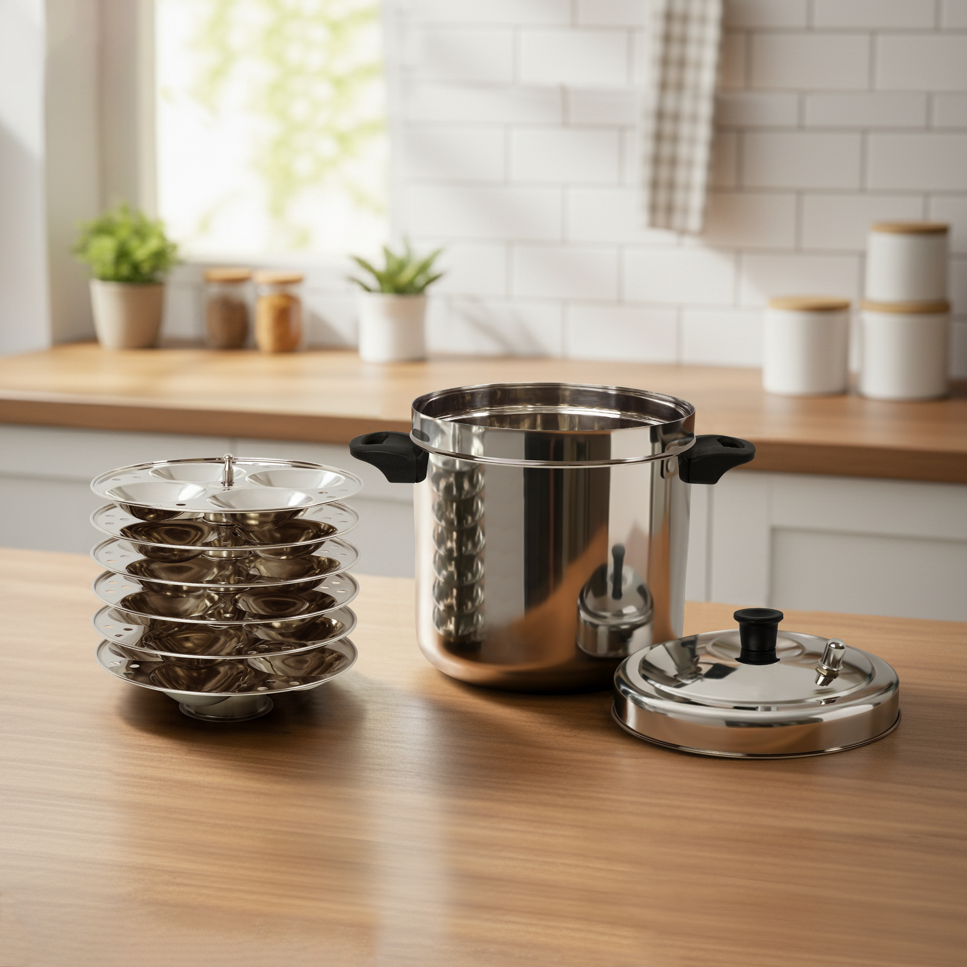 Separate Idly Plates: Comes with plates that can be placed inside for steaming idlis.